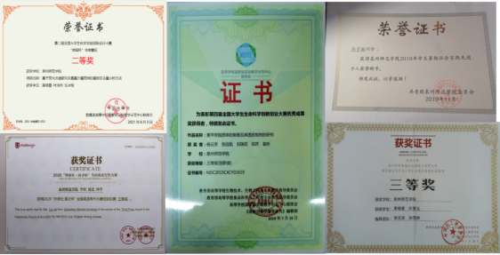 近五年,制药工程专业学生以大学生实践创新训练中心为平台,积极参加“全国大学生生命科学创新创业大赛”、“全国大学生化学实验创新设计竞赛”、“全国大学生化工原理实验大赛”、全国大学生英语竞赛等各种实践创新与竞赛活动,获全国三等奖1项、省级二等奖2项、三等奖2项。获批大学生创新创业训练计划项目15项,其中省级以上14项。