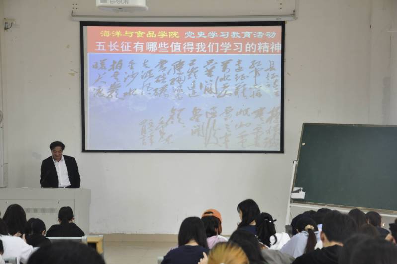4月16日,海洋与食品学院在理工楼320开展“让长征精神照亮新征程”主题党史学习教育。活动由学院党委书记蔡英卿教授主持,全体学生骨干参加活动。