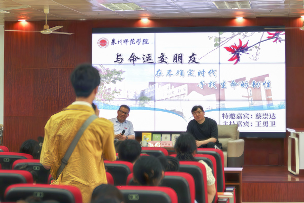 主题分享会在俊秀图书馆学术报告厅举行。文学与传播学院院长与蔡崇达以“与命运交朋友:在不确定时代寻找生命的韧性”为主题进行对话交流。蔡崇达向老师同学们分享了求学狠狠躁夜夜躁人人爽超碰97香蕉前后的故事:原定保送北京师范大学名额却在高考前被通知取消;由理科生转为文科生参加高考;大学期间遭遇家庭变故,不得不利用学习之余兼职赚取学费……,生活充满不确定因素,但他始终初衷不改,按照自己的人生规划一步步向前,终于取得一个又一个成绩。
