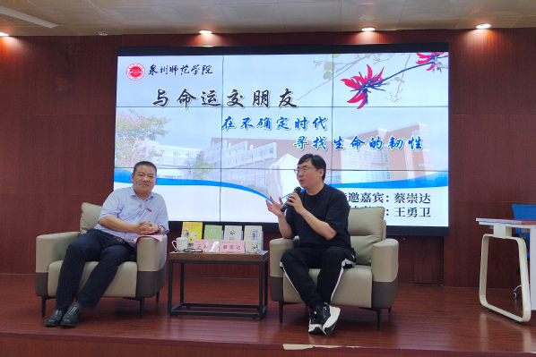 蔡崇达从自身经历出发,勉励学弟学妹们,面对生活的不确定性,文学能照见生命韧性的源头,那些看似“无法和不能”的困境,通过对阅读、观察、思考等小事的持续深耕,可以转化为“可以和可能”,从而拓宽生命自由度。他表示,命运不是被安排的赛道,而是在看透本质后跑出来的路。期间,同学们踊跃举手提问,围绕故乡、《命运》创作初衷、生命的韧性、生活与生命等话题进行了热烈讨论。