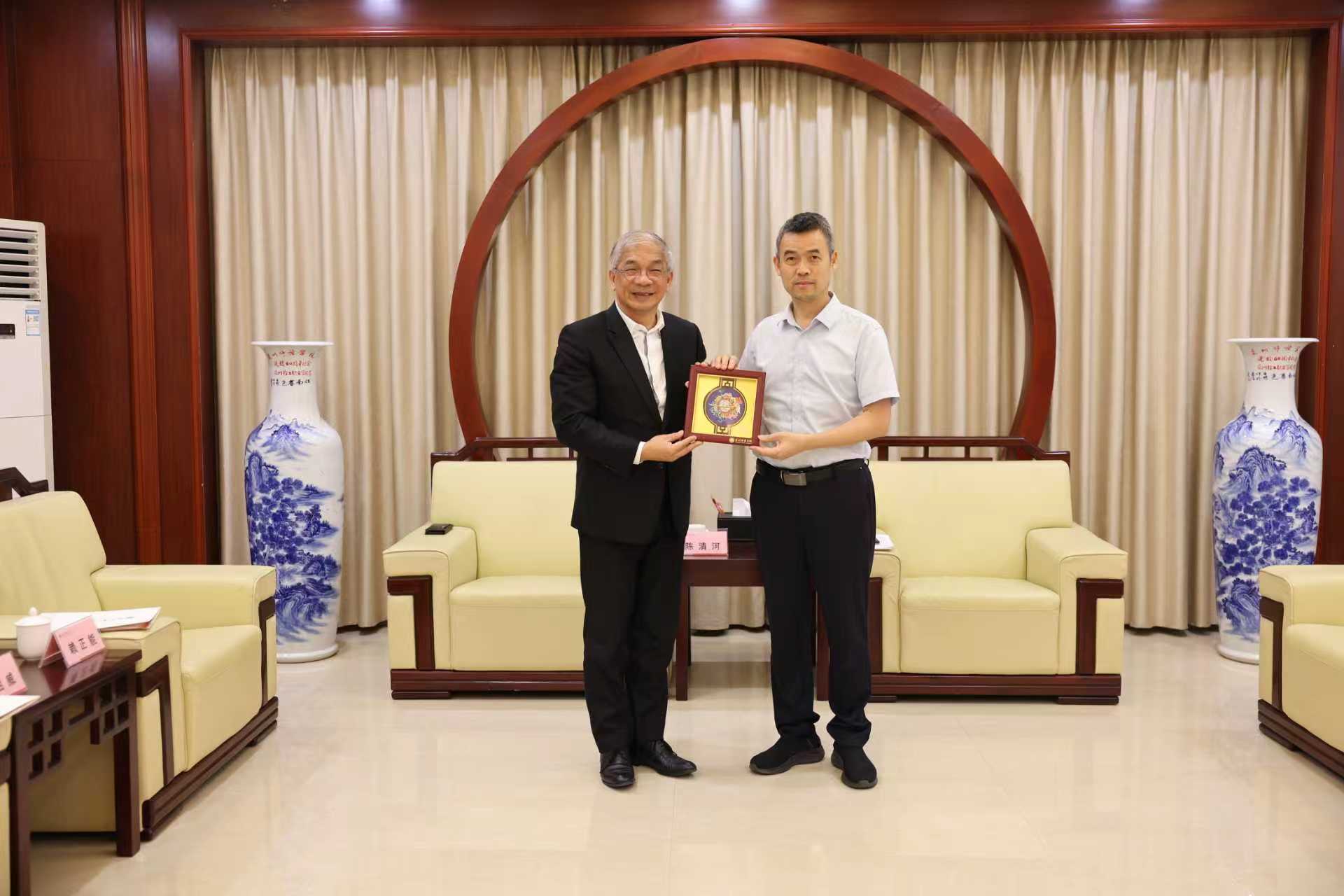 10月25日下午,台湾世新大学校长陈清河、副校长赖正能、两岸事务长邵祖威一行来校访问。校长陈昌萍、副校长黄江昆接待了客人一行,党政办、教务处、台港澳办、文传学院相关单位负责人和文传学院师生代表参加活动。