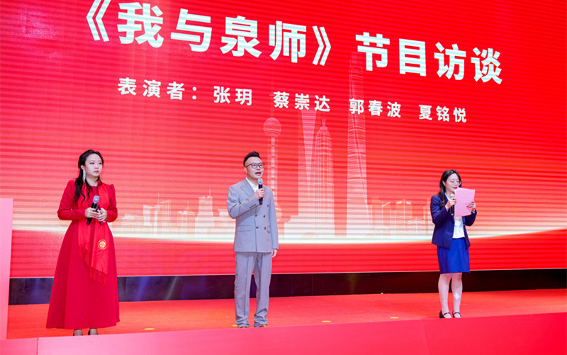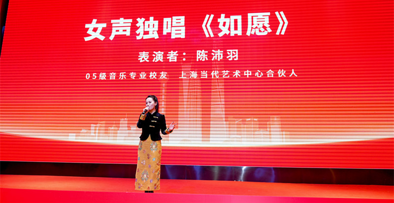 此外,大会现场精彩的校友节目轮番上演,尽显泉师学子的赤子之心与时代风采。校友代表蔡崇达、郭春波、夏铭悦、张玥倾情呈现访谈节目《我与泉师》,娓娓道来他们与母校相伴成长、砥砺奋斗、心怀感恩的动人故事,让在场每一位校友都产生强烈的情感共鸣。校友纪小玲演绎歌曲《灯火里的中国》,陈沛羽带来独唱《如愿》,她们用清澈真挚的歌声,礼赞当下的美好时光,抒发对未来的无限憧憬,更唱出了全体上海校友与母校同心同向、共赴新程的美好心愿。