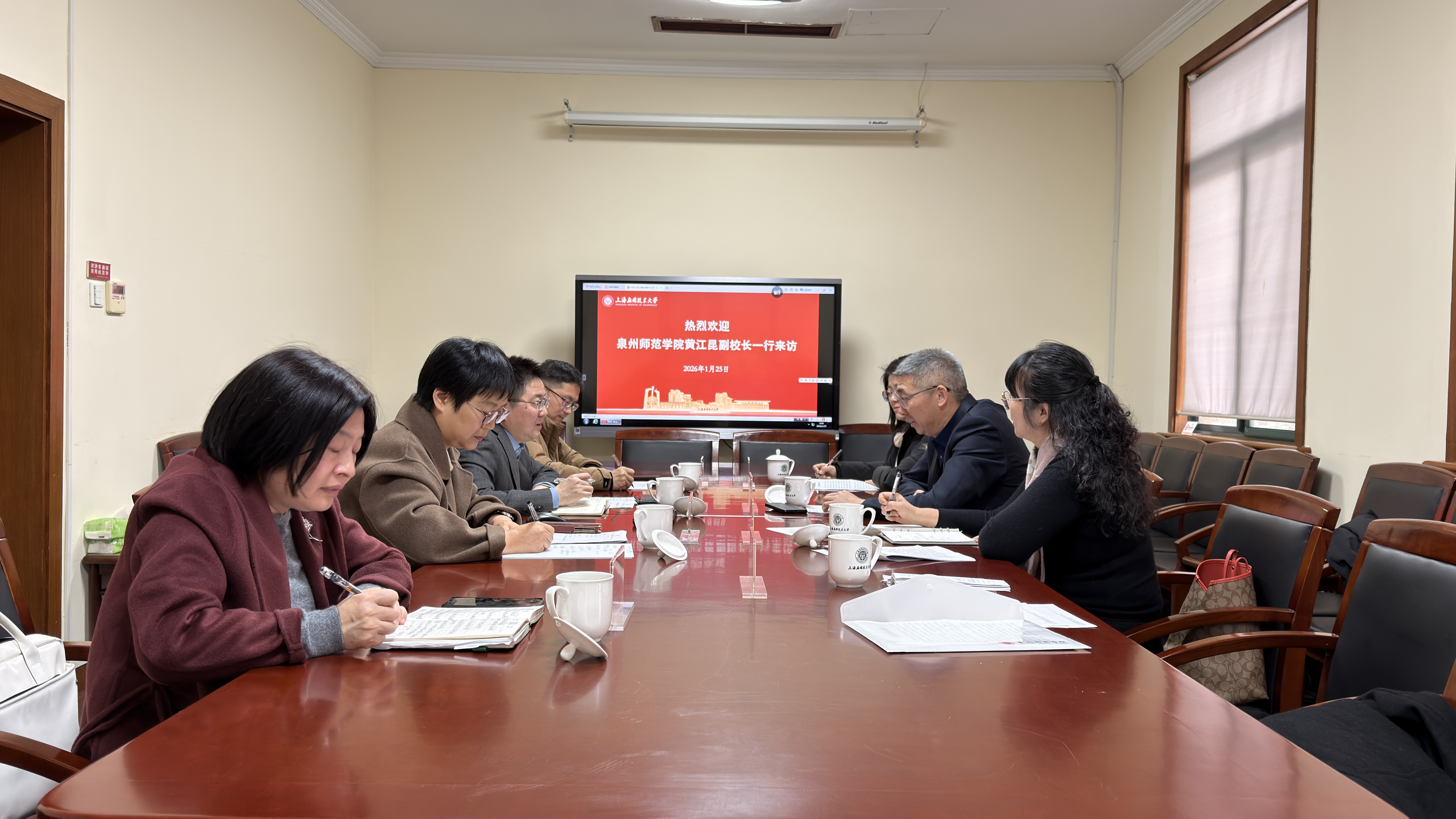 黄江昆一行还前往上海应用技术大学考察调研副校长吴志军热情接待黄江昆一行黄江昆对上海应用技术大学的办学特色、理念与成效给予高度评价,介绍了学校近年办学成果及未来发展思路,并表示希望学习借鉴该校在学科建设、研究生培养、服务地方经济社会发展等方面的经验,加强双方合作交流、携手共进。吴志军表示,两校在育人目标、学科布局、服务导向等方面存在诸多契合点,合作空间广阔,期待进一步深化交流、取长补短,推动形成优势互补的合作格局。双方围绕校校合作展开深入交流。
