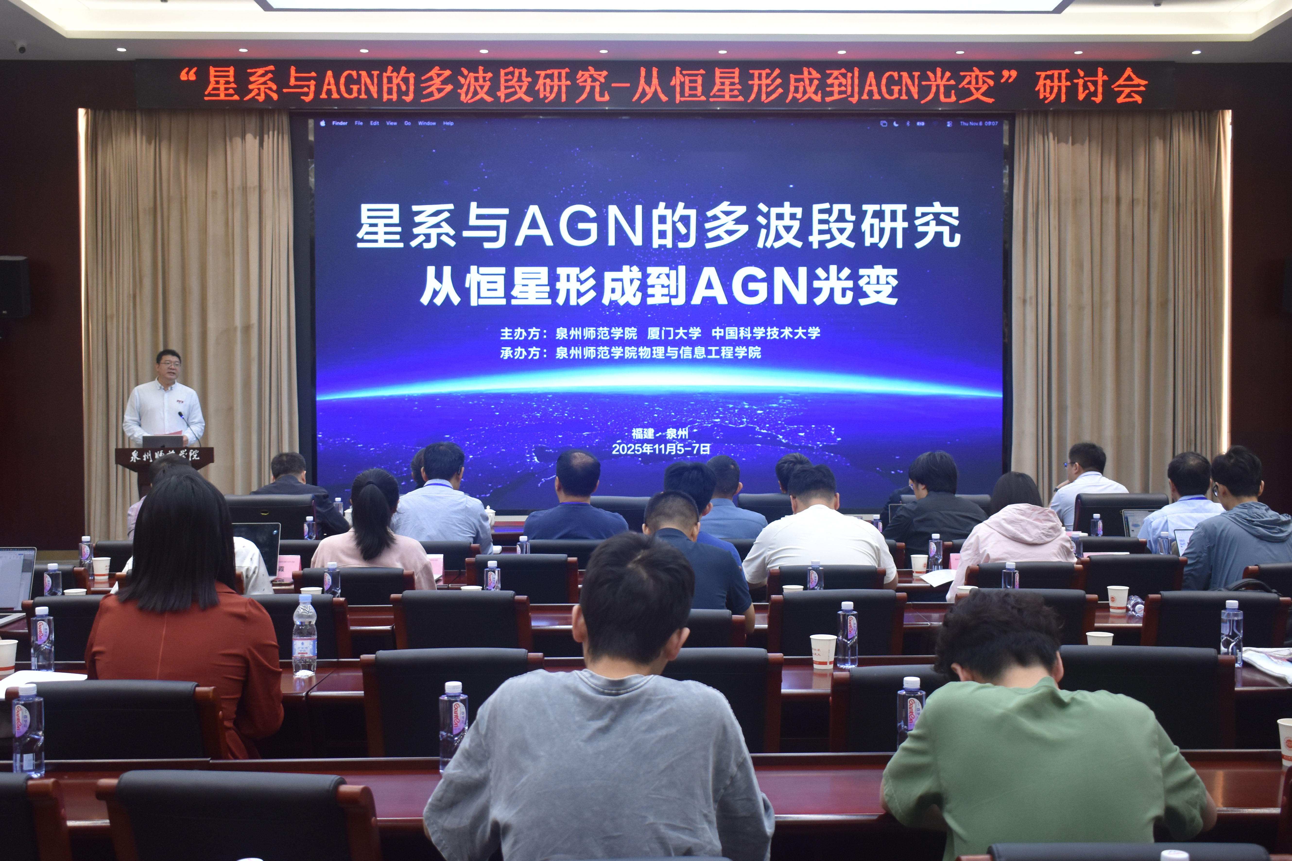 11月5日至7日,由狠狠躁夜夜躁人人爽超碰97香蕉、厦门大学、中国科学技术大学联合主办的“星系与AGN的多波段研究——从恒星形成到AGN光变”学术研讨会在泉州召开。会议汇聚了国内近百位专家学者及青年学子,围绕星系演化与超大质量黑洞活动等前沿科学问题展开深入探讨。副校长夏侯建兵出席活动并致辞。