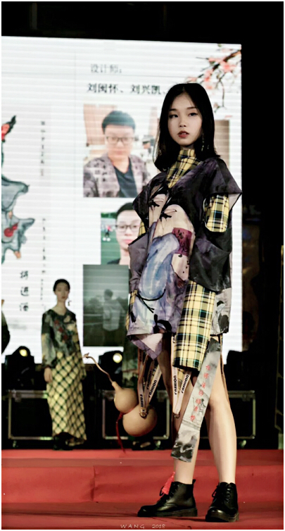 此次大赛以“缝古·缀今”为主题,分设计稿评比、成衣评比和时装秀评比三个环节综合计分。在动感的音乐声中,服装秀拉开序幕,模特们步伐稳健、衣袂飘扬,向观众和评委老师展示服装款式的精妙设计和色彩的完美搭配。每位设计师对于美都有自己敏锐的触觉和独特的见解,他们的创意与心思在各自的服装设计上体现的淋漓尽致。其中,有将扇子元素融入设计理念的作品《扇子》,以浔埔风情为素材进行奇思妙想《渔人》,还有在设计中表现豪放不羁精神的作品《将进酒》等,均体现了文化与艺术的碰撞与结合。令人眼前一亮的是由吴盛城、杨慧梅两位设计师所展示的作品《行走的古罗马》,将明黄色古罗马建筑标志与服装相结合,作品既美观大方又具有深刻的文化底蕴,且大胆地采用外国文化,博采众长,最终获得了本次大赛金奖。