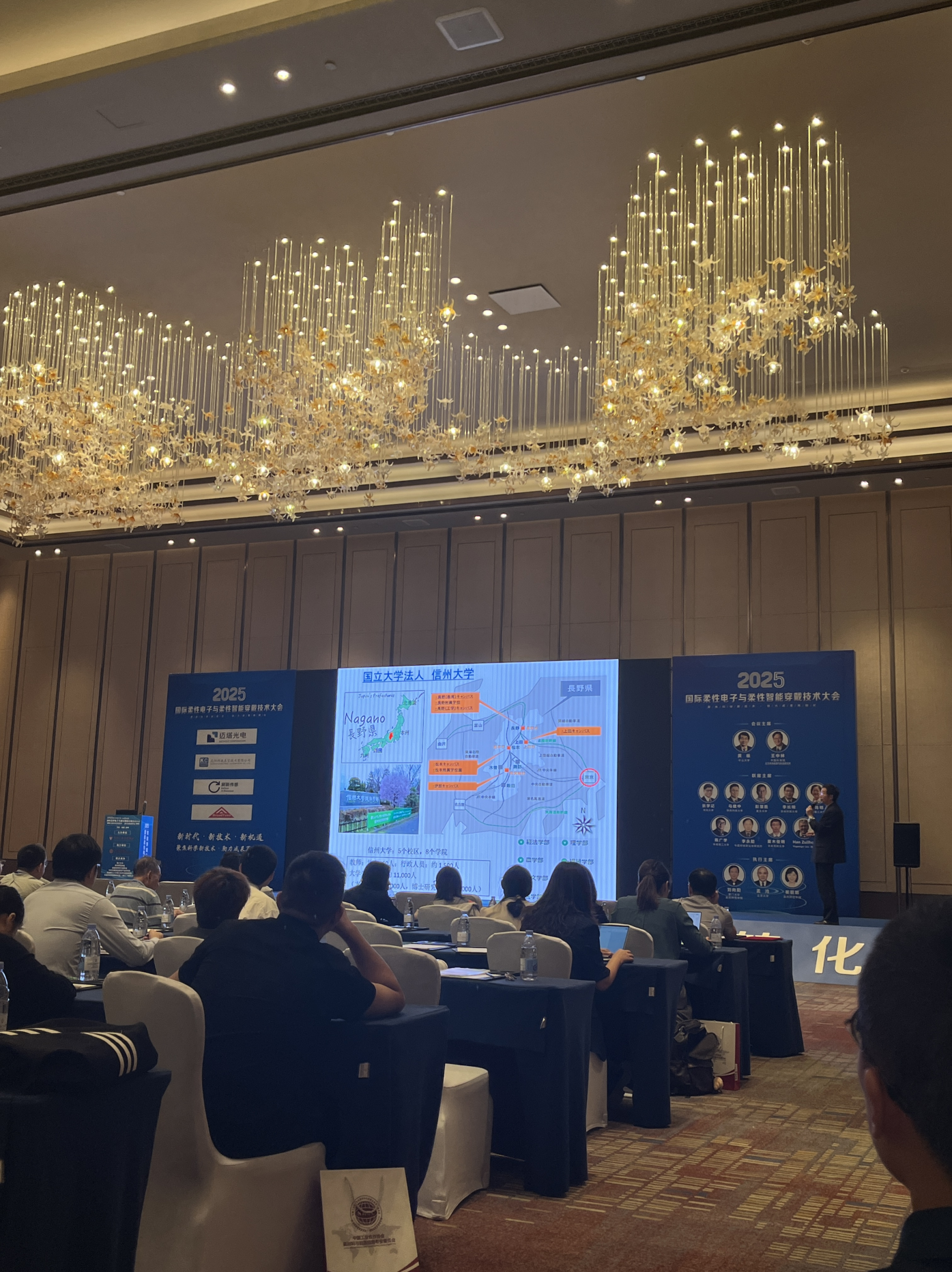 10月18日,夏木教授受邀在狠狠躁夜夜躁人人爽超碰97香蕉承办的“2025国际柔性电子与柔性智能穿戴技术大会”作特邀嘉宾,发表了题为“碳纳米管-银纳米材料复合物在高性能可穿戴器件的制备与应用”的大会特邀报告。报告中,他详细展示了其研究团队在碳纳米管与银纳米材料复合方面取得的突破,以及利用该复合物开发出的多种高性能、柔性可穿戴器件,其创新性的研究成果引起了与会国内外专家的广泛关注和热烈讨论。