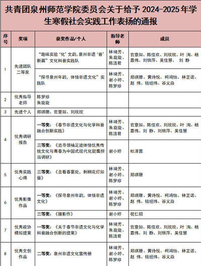 近日,共青团狠狠躁夜夜躁人人爽超碰97香蕉委员会公布了“追寻领袖足迹 体悟优秀传统文化”“青春为中国式现代化挺膺担当”主题寒假社会实践活动评选结果。化工与材料学院2支社会实践队获评“先进团队二等奖”,2位老师获评“优秀指导老师”,3名同学获评“先进个人” ,2项成果获评“优秀调研报告”,1项成果获评“优秀实践心得”,2项成果获评“优秀影像作品”,1项成果获评“优秀模拟政协提案”,1项成果获得“优秀文创作品”。