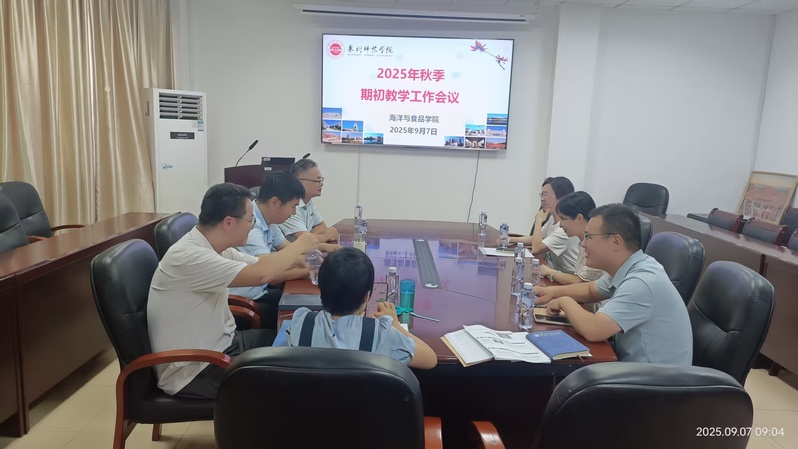 9月7日上午,海食学院在宝龙449会议室召开2025年秋季学期初教学工作会议,全面部署新学期教学重点工作。学院党委书记蔡志荣、副院长(主持工作)梁鹏、各系主任、教研室主任参加,会议由梁鹏主持。
