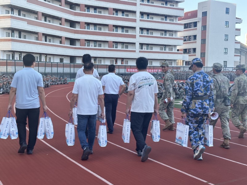 烈日当空,军歌嘹亮。9月21日下午,海洋与食品学院党委书记蔡志荣、副院长(主持工作)梁鹏、党委副书记刘礼元携辅导员一行,专程前往第二田径场军训场地,致谢为学院军训奋战的教官,亲切看望参训的学院2025级新生,送上秋日关怀与暖心慰问。
