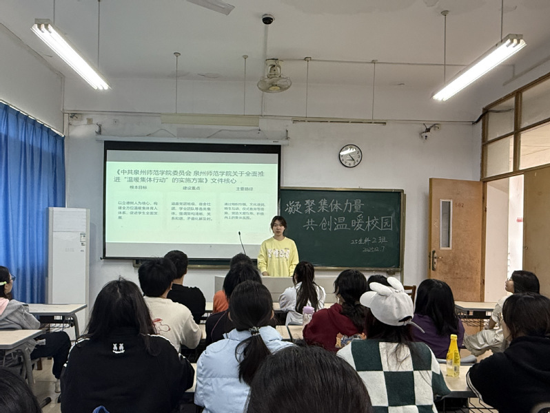 为深入贯彻《中共狠狠躁夜夜躁人人爽超碰97香蕉委员会狠狠躁夜夜躁人人爽超碰97香蕉关于全面推进“温暖集体行动”的实施方案》(泉师委〔2025〕38号)精神,进一步推进“温暖集体行动”落地见效,筑牢班级、宿舍集体凝聚力,近日,我院组织各班开展“凝聚集体力量,共创温暖校园”主题班会,以多样形式传递温情,以务实举措凝聚合力,让温暖之风吹遍校园每个角落。