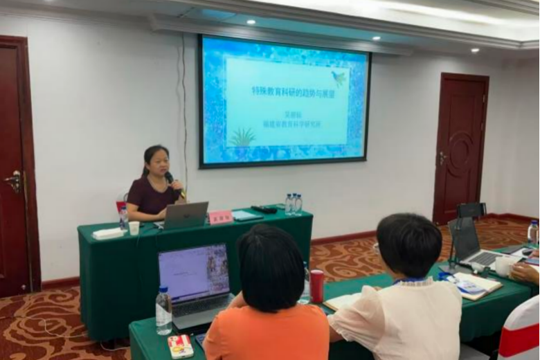 厦门市教科院教研员李玉影以《区域融合教育质量提升路径》为题,介绍了厦门融合教育的成功经验,展现了技术赋能融合教育的可行性,分享了凝聚学校、家长、社区育人合力的具体做法。福建省教育亚洲精品久久国产精品37P所副研究员吴丽仙指导学员了解特殊教育发展前沿与趋势,使学员对特殊教育领域科研与教学融合有了系统性认知,也进一步明确了开展特殊教育科研的价值与意义。