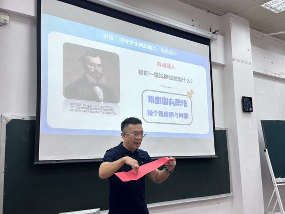 张航教授以“给一张纸能发现什么”游戏导入,指出创新思维是对现有认识和实践的升华突破,人人具备创新能力。随后,他围绕“破界:范式重构”,提出构建无边界科学课堂理念,并结合丰富实践案例分析通过混合式学习、游牧式学习、社会化学习等多种方式如何开展无边界科学课堂,以及当前实践中存在的挑战与对策。在“创新:突破定势”部分,他通过垃圾桶盖把手积垢等多种案例,详细讲解逆向、发散等创新思维在实践中的应用与效果。最后,在“创变:价值创造”环节,他介绍了奥斯本检核表法,并与学生互动开展“新型吸管”创新改造任务等,指导学生开展创新实践。