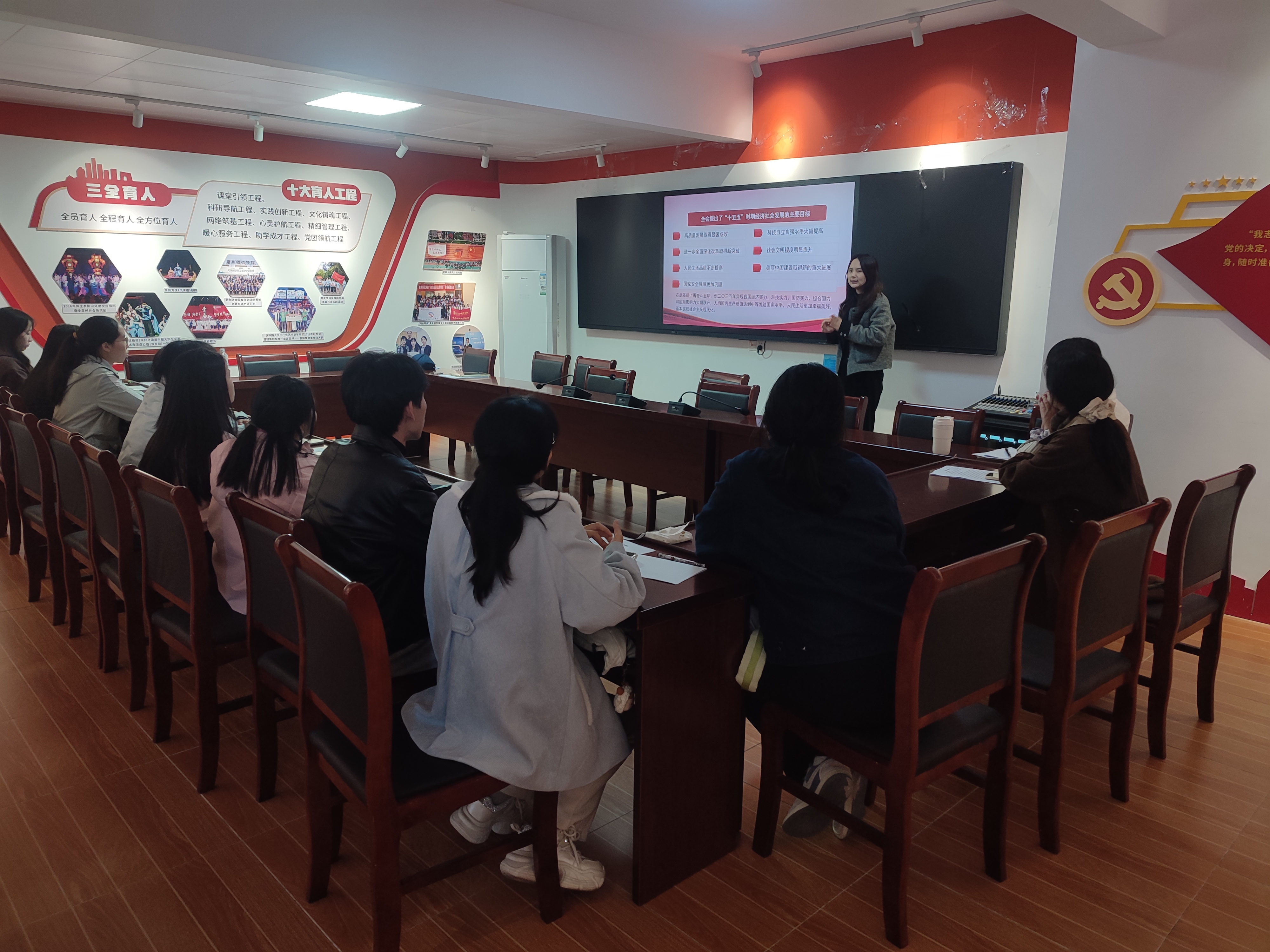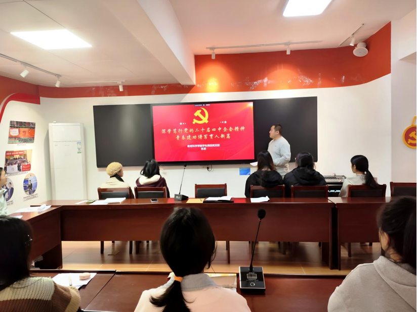 团委委员杨碧敏紧扣党的二十届四中全会精神,聚焦“十五五”时期战略部署与青年使命担当,为支部党员解读在科技创新、乡村振兴、绿色发展等领域对青年提出的新要求,引导学生将个人理想融入国家发展大局,在专业学习与实践历练中找准自身定位,为国家战略实施注入青春动能。