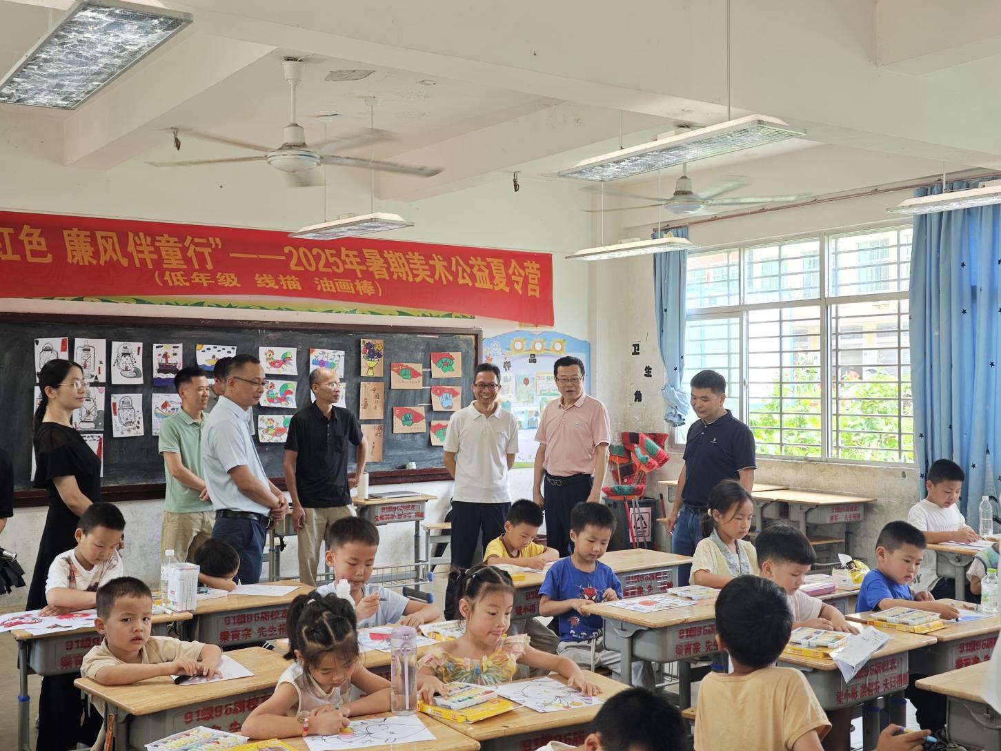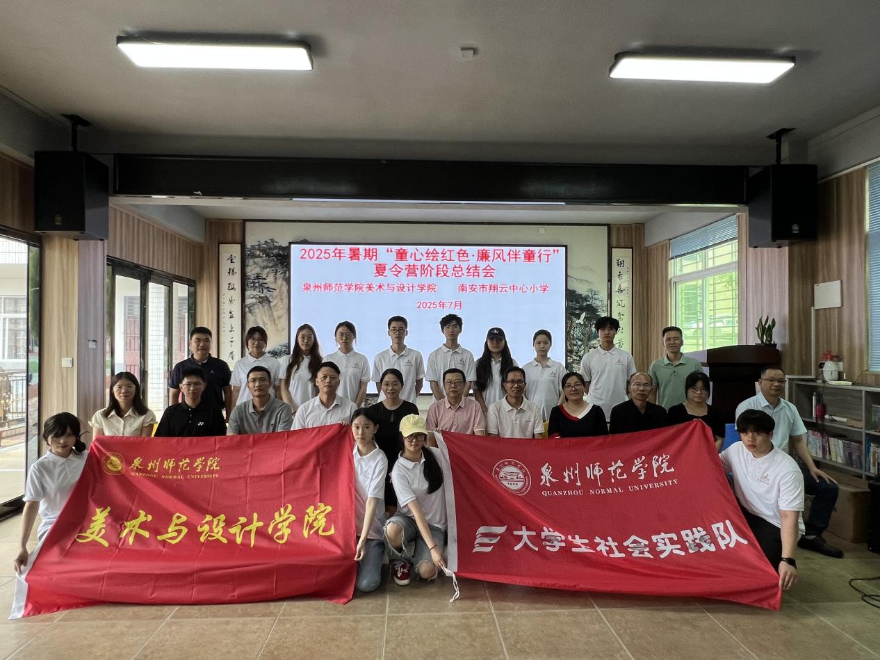 为激励广大青年在中国式现代化建设中挺膺担当,美术与设计学院于2025年暑期精心组建“童心绘红色・廉风伴童行”和“丹青绘征程 青春传薪火”两支特色实践团队,分别奔赴南安市和安溪县开展主题社会实践活动。近日,学院党委书记王宝山、党委副书记兼纪委书记白雅芬分别率队前往两地实践基地,亲切看望慰问实践队员并开展专题调研座谈。美术学专业主任连晓波、辅导员骆泊屹、严恺、李颖等陪同参加相关活动。