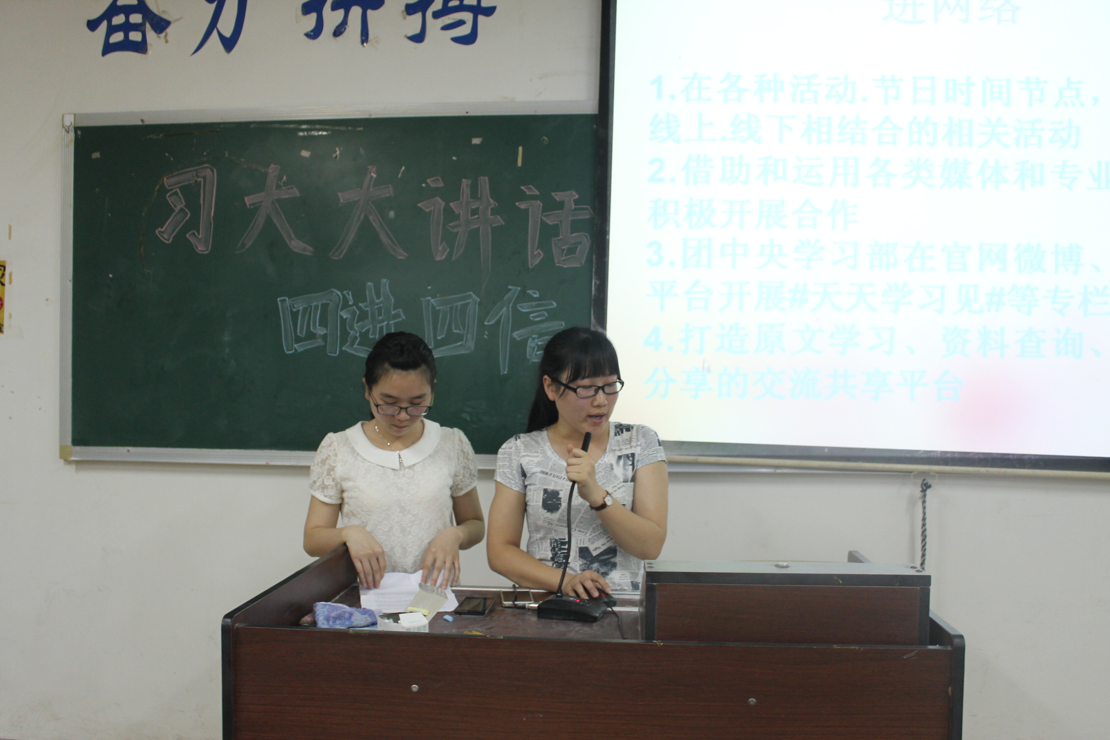4月19日晚六点半,我院积极响应校学习两会精神的号召,在各班开展了以“四进四信”为主题的团日活动。