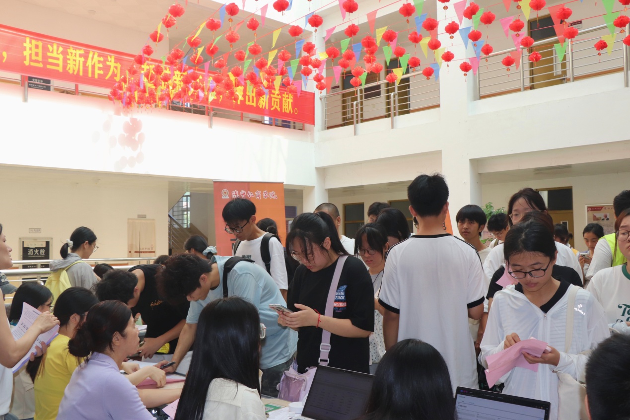 9月13日,我院在文科楼B区开展2025级新生迎新活动。夏侯建兵副校长及有关部门负责人亲临学院迎新现场,与新生及家长亲切交流,看望慰问工作人员和志愿者。