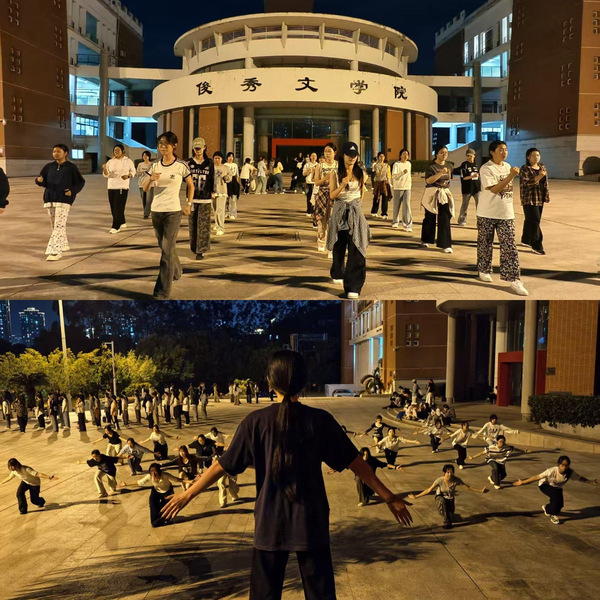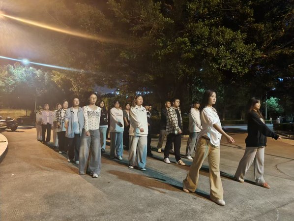 据了解,广播操训练自10月13日起启动初级筛选,人数从190人精简至101人。队员们每天早晨6:30于俊秀广场开展集体训练,对照标准动作逐节抠细节、纠姿势,在教员的反复指导调整下,广播操整体水平已取得显著进步。方阵队伍于周一至周四晚间20:55至22:10,在俊秀广场榕树前空地集合训练。他们以“规范”为核心,力求动作一致、整齐划一,在全体成员的不懈努力下,方阵排练取得阶段性成效。
