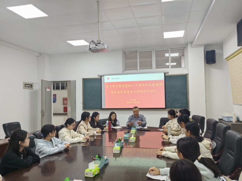 2025年12月18日,院党委书记蒋双霖在外文楼207为学生党员、入党积极分子代表讲授专题党课。
