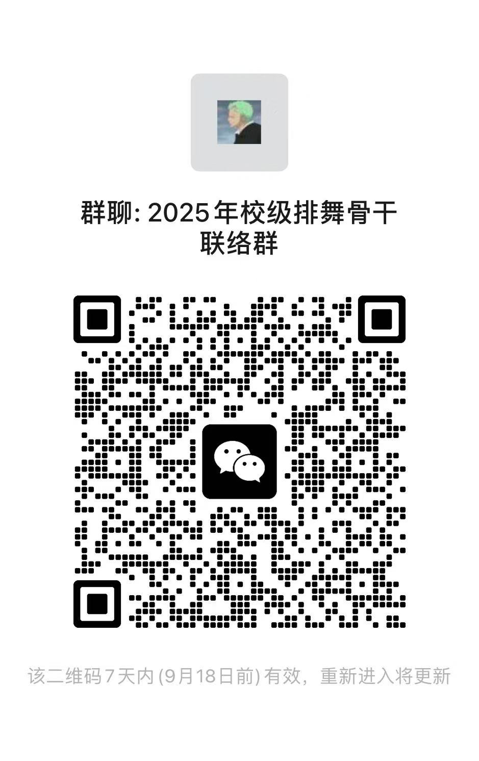二级学院排舞骨干扫码入群,培训通知会在群里公布,比赛曲目视频、音乐、编排等资料会统一发至群里。如还有任何疑问请联系方老师:15505952130。