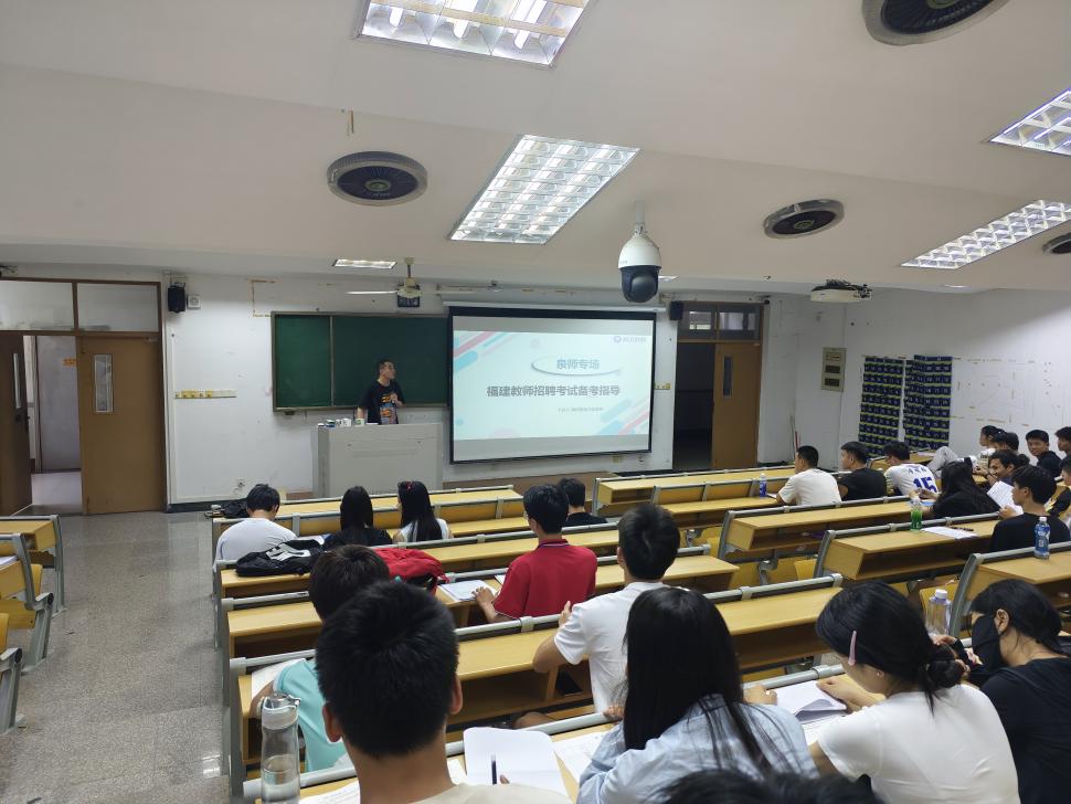 为帮助我院学生更好了解教师招考形式,掌握备考技巧,提升就业竞争力。5月16日,体育学院邀请闽试教育辅导机构老师尤弘在千墅208举行教师招聘考试备考指导会,体育学院2022级全体学生参与,学工办主任林增辉老师主持本次指导会。