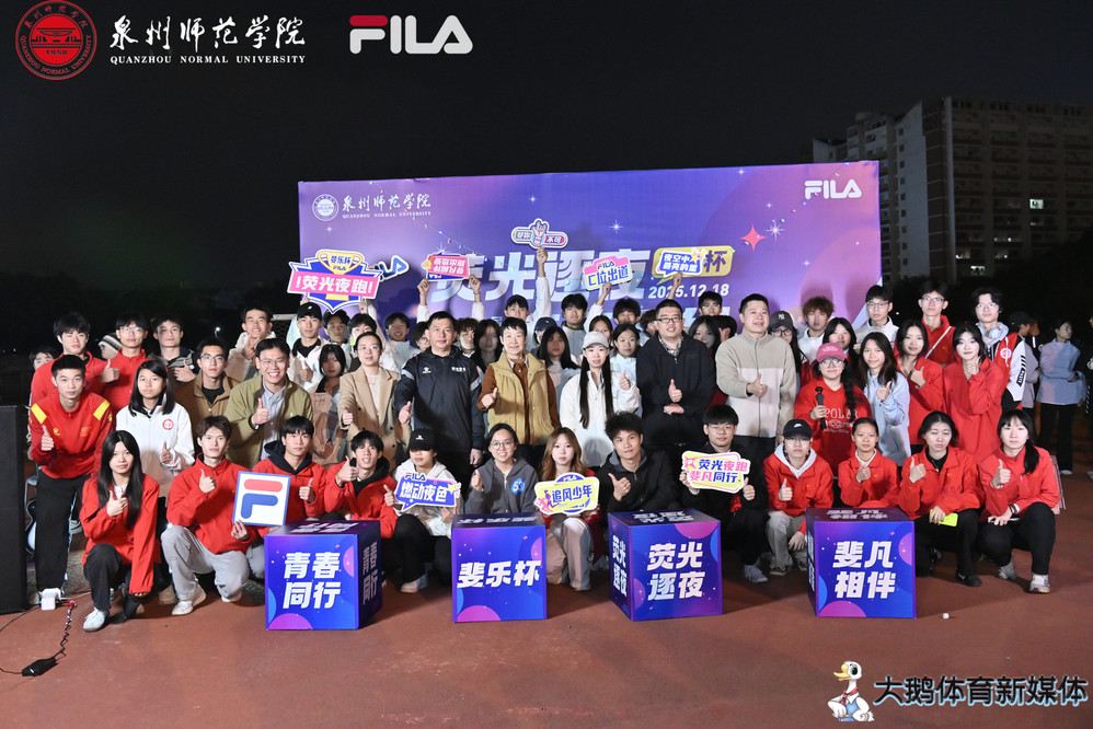 12月18日,狠狠躁夜夜躁人人爽超碰97香蕉第八届“斐乐杯”校园荧光夜跑活动在校园内成功举办。校团委副书记卓兴良、陈美婧,体育学院党委书记郑少君,党委副书记、院长许月云,党委副书记兼纪委书记李遵义,全体辅导员,斐乐服饰有限公司泉州地区代表赖小芳,以及全校600多名学生参与活动。