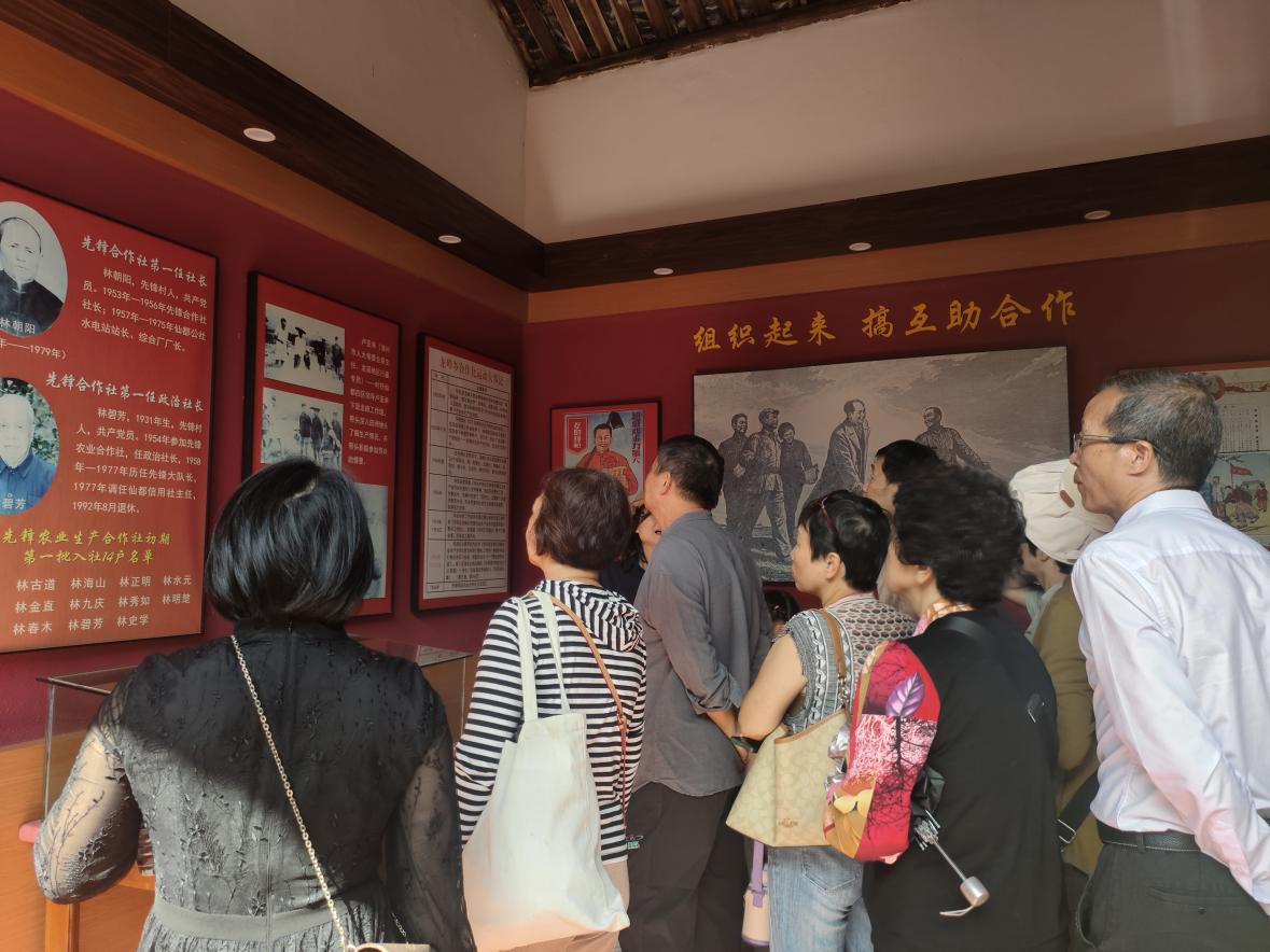 调研组首站走进华安县先锋村“毛主席批语之乡教育基地”。在 “四对比、五算账” 群众路线教育馆内,盟员们通过聆听讲解,观摩史料图片和实物展陈,沉浸式感悟“从群众中来,到群众中去”的优良传统。大家纷纷表示,要从红色遗产中汲取奋进力量,将“以民为本”、“为民服务”的理念深度融入履职实践。