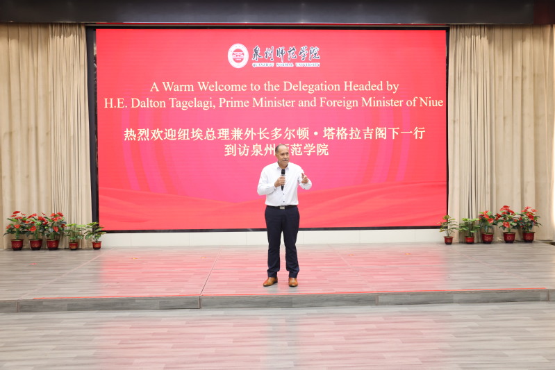 在与师生亲切交流互动后,多尔顿·塔格拉吉欣然发表感言,感谢学校的热情接待和精心安排,对学校办学予以赞赏,肯定了学校与太平洋岛国交流合作的成效。表示今后会积极推动学校与纽埃在教育、文化、实用技术等方面的交流项目,也希望更多的太平洋岛国青年能到泉州师院接受培训,掌握技术,学成后建设自己的国家。