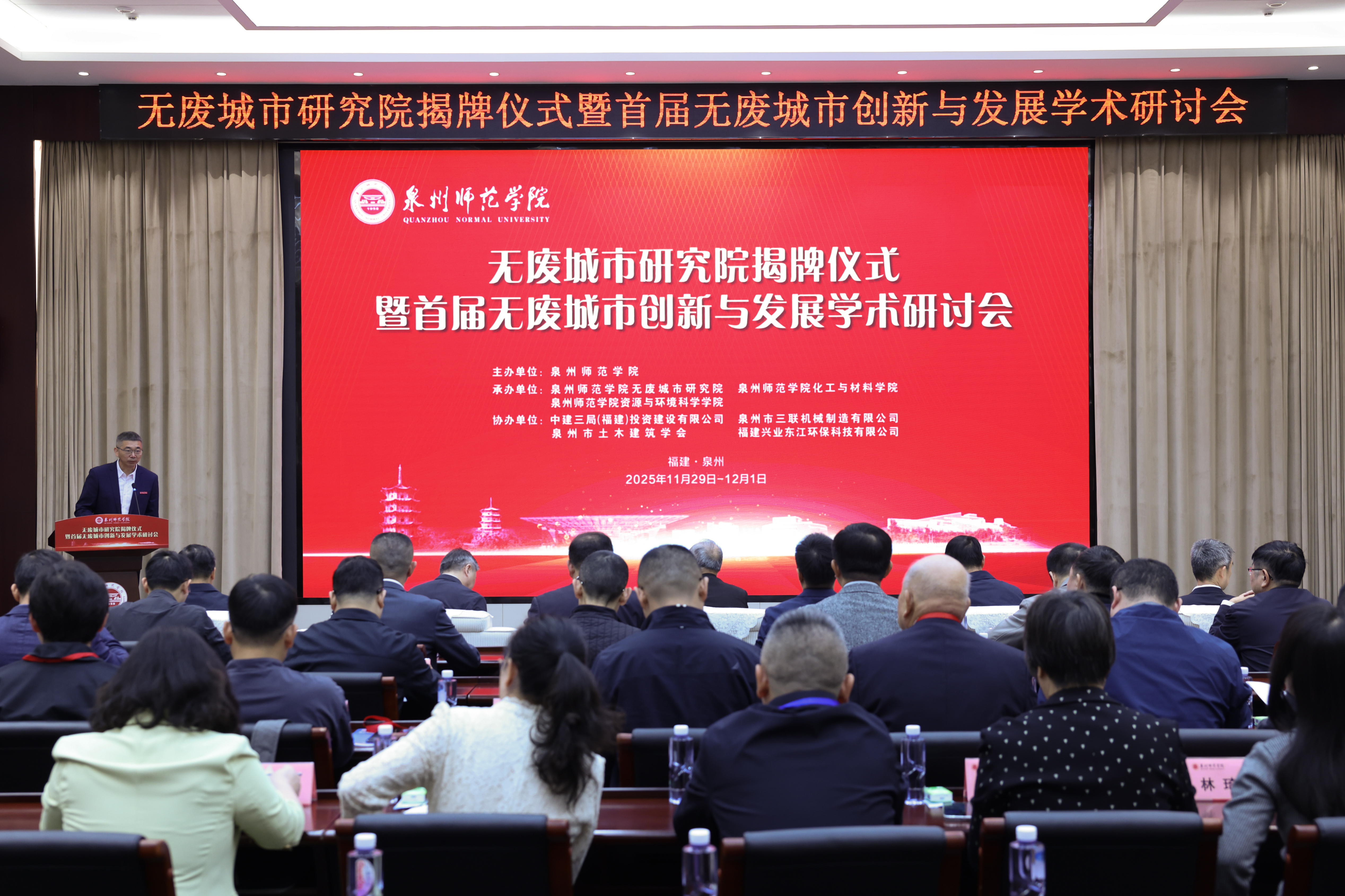 柯瑞清代表学校致辞。他指出,党的二十届四中全会强调“绿色发展是中国式现代化的鲜明底色”,“坚持把发展经济的着力点放在实体经济上,坚持智能化、绿色化、融合化方向”。学校作为一所扎根泉州、服务地方的应用型高校,始终坚持将学科建设与地方产业发展深度融合。此次成立“无废城市研究院”,正是学校贯彻落实习近平生态文明思想,主动服务泉州经济社会发展的具体实践。学校将进一步发挥科技第一生产力、人才第一资源、创新第一动力的结合点作用,紧扣泉州产业特色,积极构建“技术研发—中试验证—装备制造—产品应用”的全链条创新体系,为固废减量化、资源化提供系统性解决方案,助力泉州生态文明建设,推动区域经济绿色转型发展。