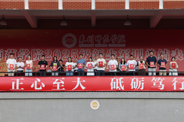 会上,教务处负责人宣读了此次军训评选出的先进集体和个人名单;外国语学院2025级英语(师范)类专业黄晶同学代表军训标兵发言。