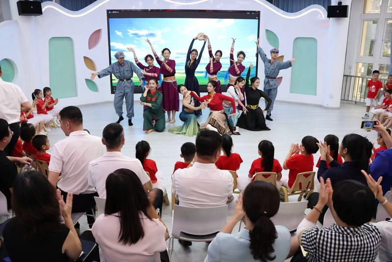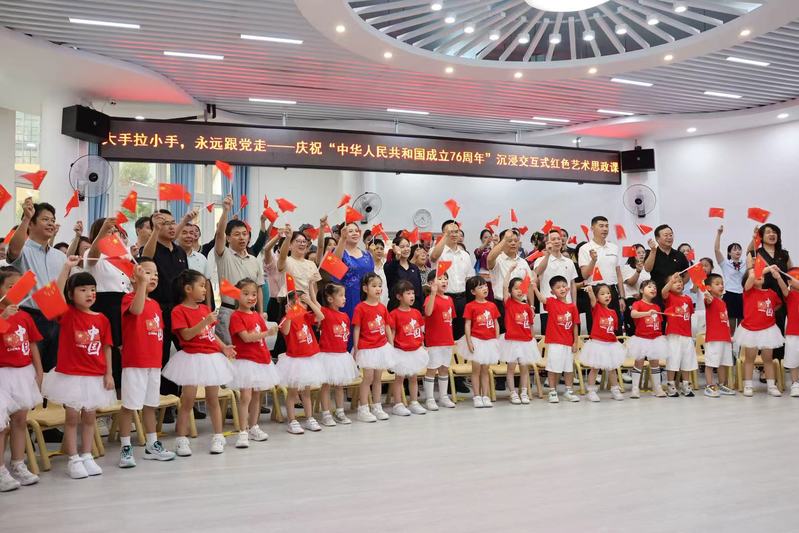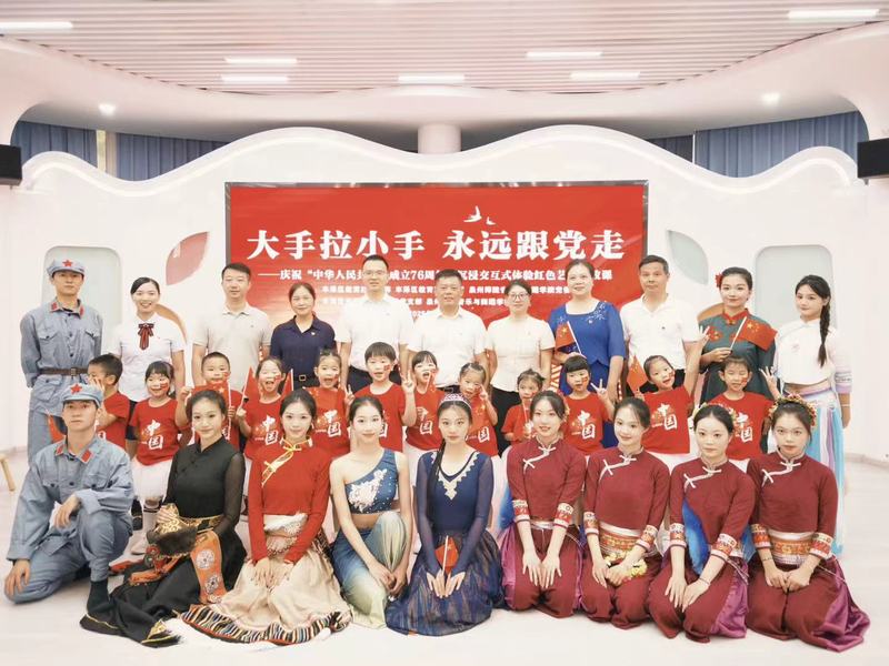 9月29日,在中华人民共和国成立76周年之际,一场以“大手拉小手,永远跟党走”为主题的沉浸交互式体验红色艺术思政课在泉州市丰泽区东海实验幼儿园温情开讲。80余名来自泉州市丰泽区东海片区红色矩阵单位代表、狠狠躁夜夜躁人人爽超碰97香蕉音乐与舞蹈学院师生及东海实验幼儿园师幼代表齐聚一堂,以艺术为桥,共忆峥嵘、传承红色基因。