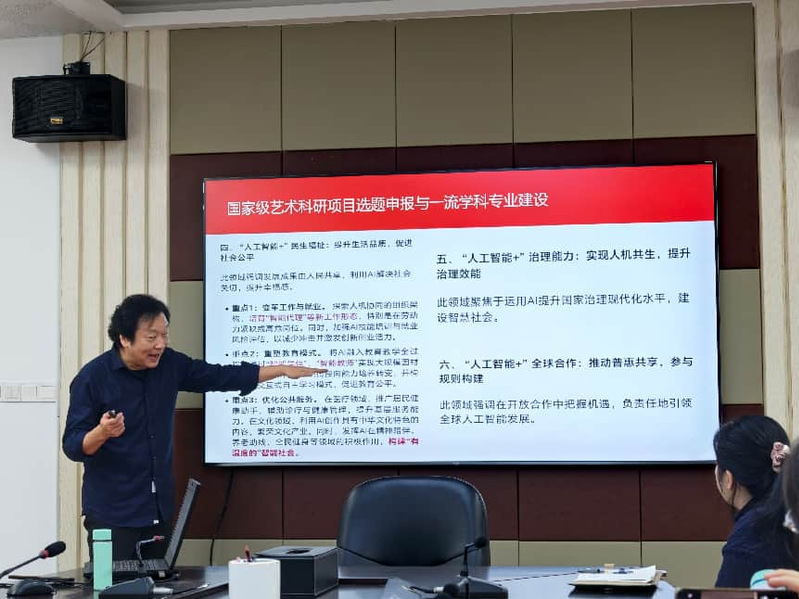 李教授特别强调,实现科研转型必须推动科研与教学的深度融合。课程建设是科研基石,应大力发展虚拟仿真、线上线下混合式一流课程,并将艺术实践活动系统化、课程化;同时要从教学前沿发现课题,“人工智能+教育”“拔尖创新人才发现机制”“高校美育浸润行动”等教学改革方向,本身就是极具潜力的研究课题。最后,李教授给出了关键的行动建议:艺术科研工作者首先要提高站位,吃透国家政策,找准个人研究在国家战略格局中的坐标;其次要学会主动变通,灵活调整研究视角,使其与国家需求同频共振;最终要走向有组织科研,将“个人选题”升级为凝聚团队优势、具备明确解决方案的“集体课题”。