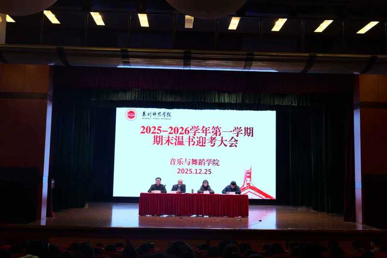 12月25日下午,音乐与舞蹈学院在学院音乐厅召开2025-2026学年第一学期期末温书迎考暨安全教育大会。学院党委书记苏国柱,各科室负责人,辅导员以及全体非毕业班学生参加。
