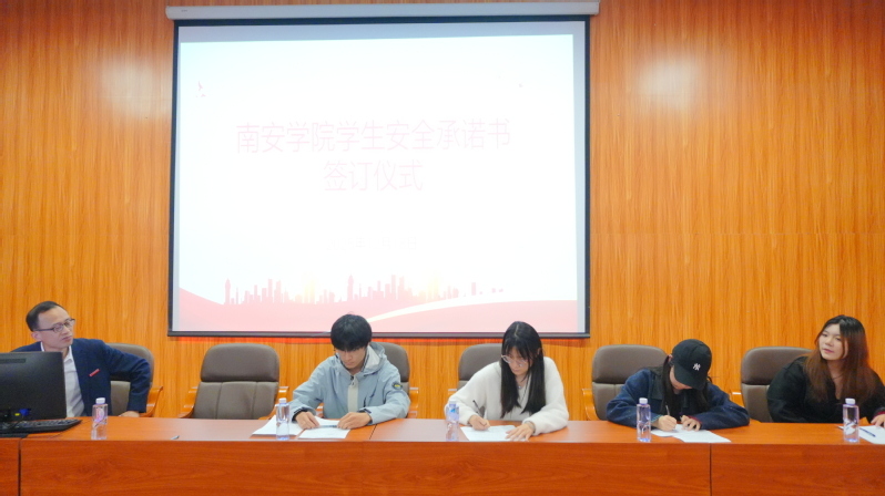 首先,学院组织2025级学生代表签订《安全承诺书》。安全承诺书涵盖消防安全、交通安全、实验室安全等重点领域,明确了学生在日常生活中应遵守的安全准则和行为规范,引导学生将安全意识内化于心、外化于行,以实际行动守护自身安全。