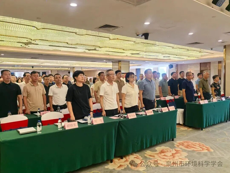 大会在庄严的国歌声中正式拉开序幕。主持人、学会理事长林榕加首先介绍了出席本次大会的领导和嘉宾,包括泉州市生态环境局、科学技术协会等相关部门领导,以及众多环保领域的专家学者和企业代表,并对他们的到来表示热烈的欢迎和衷心的感谢。