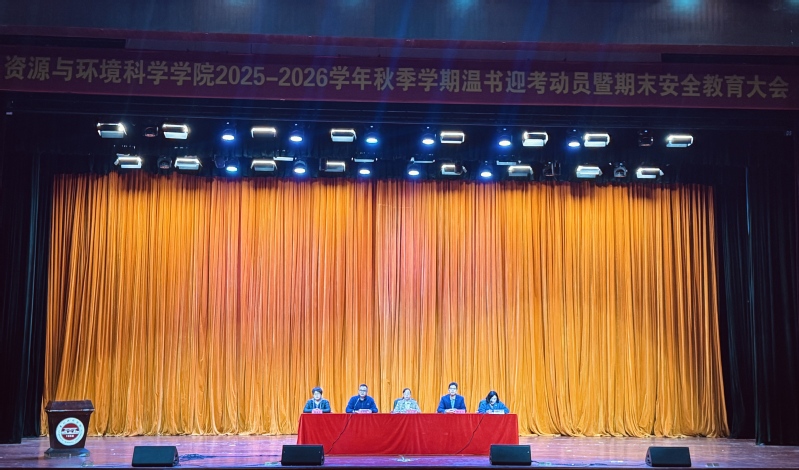 为营造积极备考、诚信应考的良好氛围,进一步强化学风建设与安全意识,12月25日下午,资源与环境科学学院于陈祖昌礼堂召开2025学年秋季温书迎考动员暨期末安全教育大会。全体院领导、各专业主任、全体辅导员、班主任及2023-2025级全体学生参加会议。会议由学院党委副书记、纪委书记连明伟主持。
